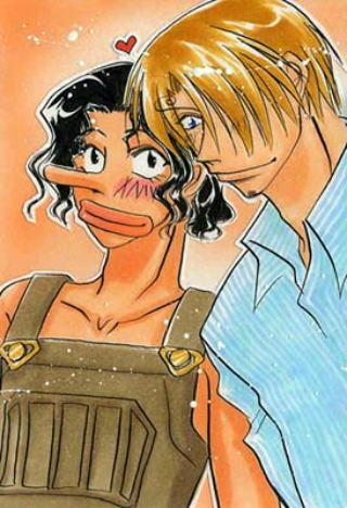 ありえない…と描いてる自分でも思ってました(苦笑) ウチのウソップは基本的に恥ずかしがり屋さん(死語)なのでこんな素敵時間はそう長続きしません(断言)ちょっとでも他クルーの姿や声がすると、ハイそこで終了!ですからサンジ君も隙を見つけてはくっつこうと涙ぐましい努力をしております(笑)ので、ちょっと幸せ〜な二人を描いてみました♪…とか言って、幸せなのは私だったり…笑オフ活動二周年に描いた物です。